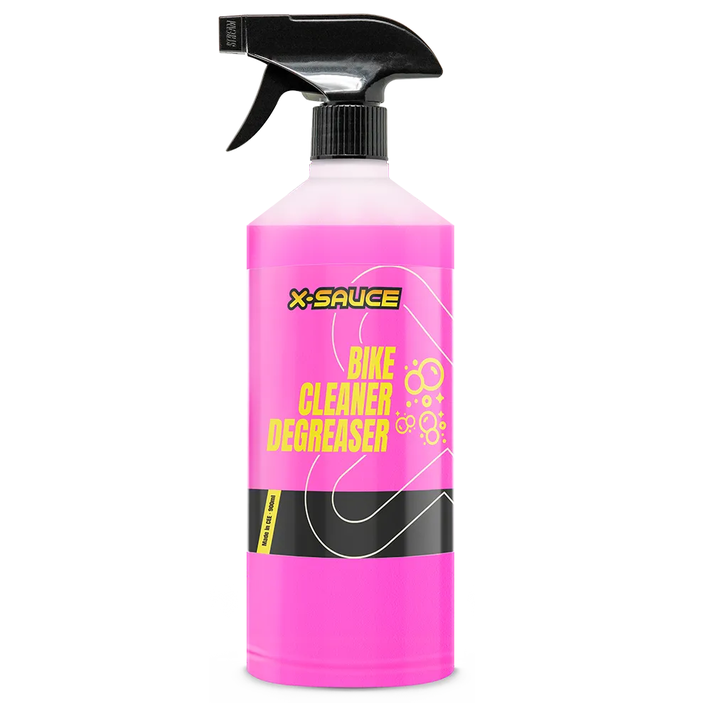 Producto limpiador general para bicicletas a la vez que desengrasante para cadenas. El limpiador desengrasante de X-Sauce se ha formulado teniendo muy en cuenta las partes delicadas de la bicicleta, maximizando su fuerza desengrasante y eficacia hasta donde nos ha permitido conservar la inocuidad para las partes de goma y anodizados.